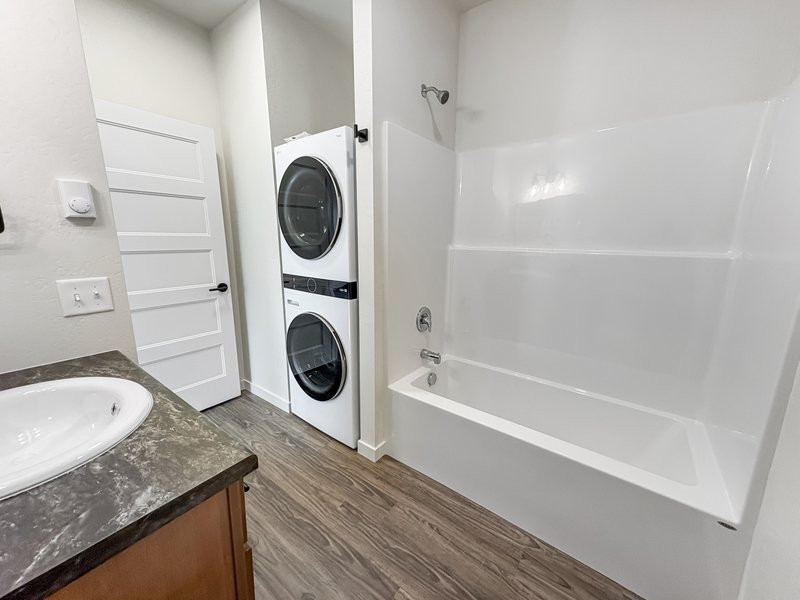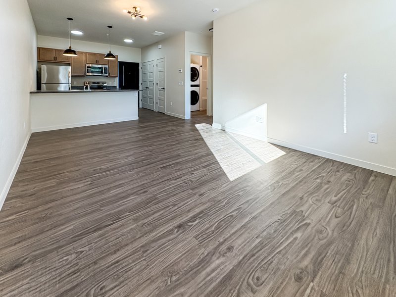 This beautiful apartment features luxury vinyl plank flooring, stainless steel appliances, air conditioning, washer and dryer, and storage units. Upper level units have covered balconies and vaulted ceilings. Lower floors have 9 foot ceilings for great reflection of natural light.