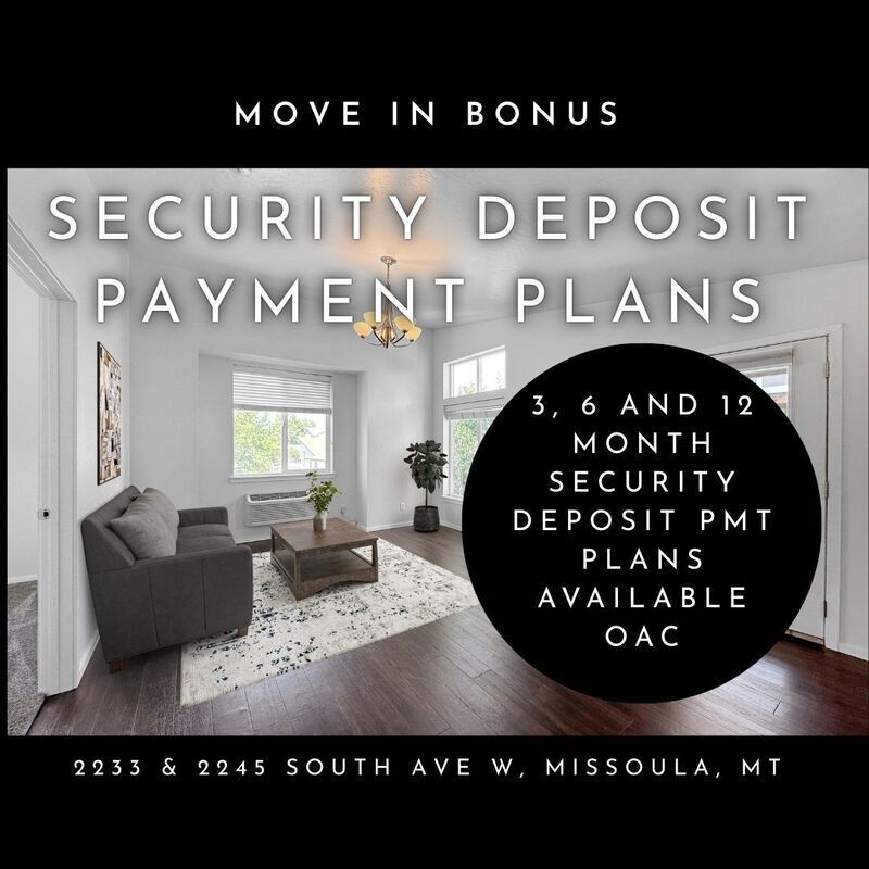 Rent Smart Property Management is proud to be the first PM in Missoula offering the renter community a reduced barrier of entry in securing your next home. We have partnered up with a 3rd party vendor who offers 3, 6, 9 or 12 month payment plans on your security deposit. Secure your new home with a fraction of the move in fees! Upon application approval and acceptance of our lease terms, you will be sent a link to qualify for your payment terms. * Payments are made online directly to the vendor who will hold your deposit through the term of your lease and refund your balance due after you vacate in accordance with the MRLTA.