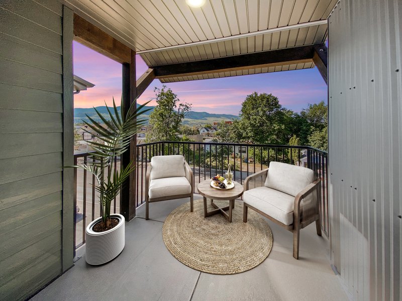 Covered patio or balcony, depending on floor plan